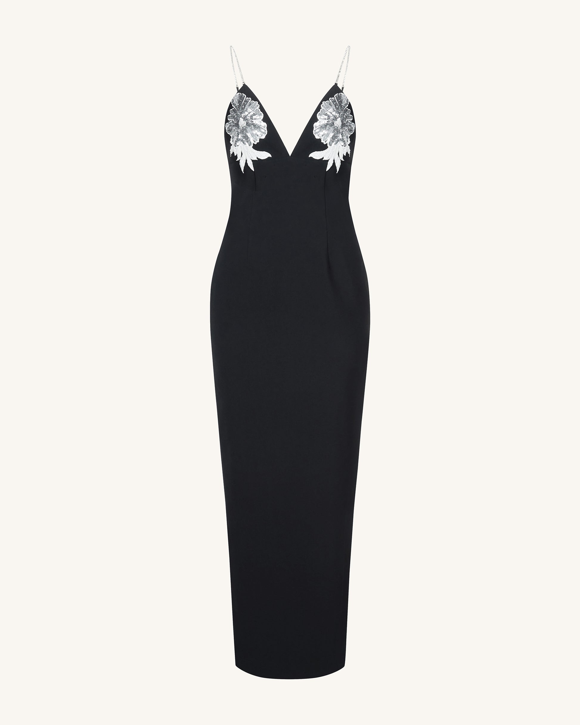 Ayliua 스윗하트 넥라인 라인스톤 장식 블랙 롱 드레스 - 블랙