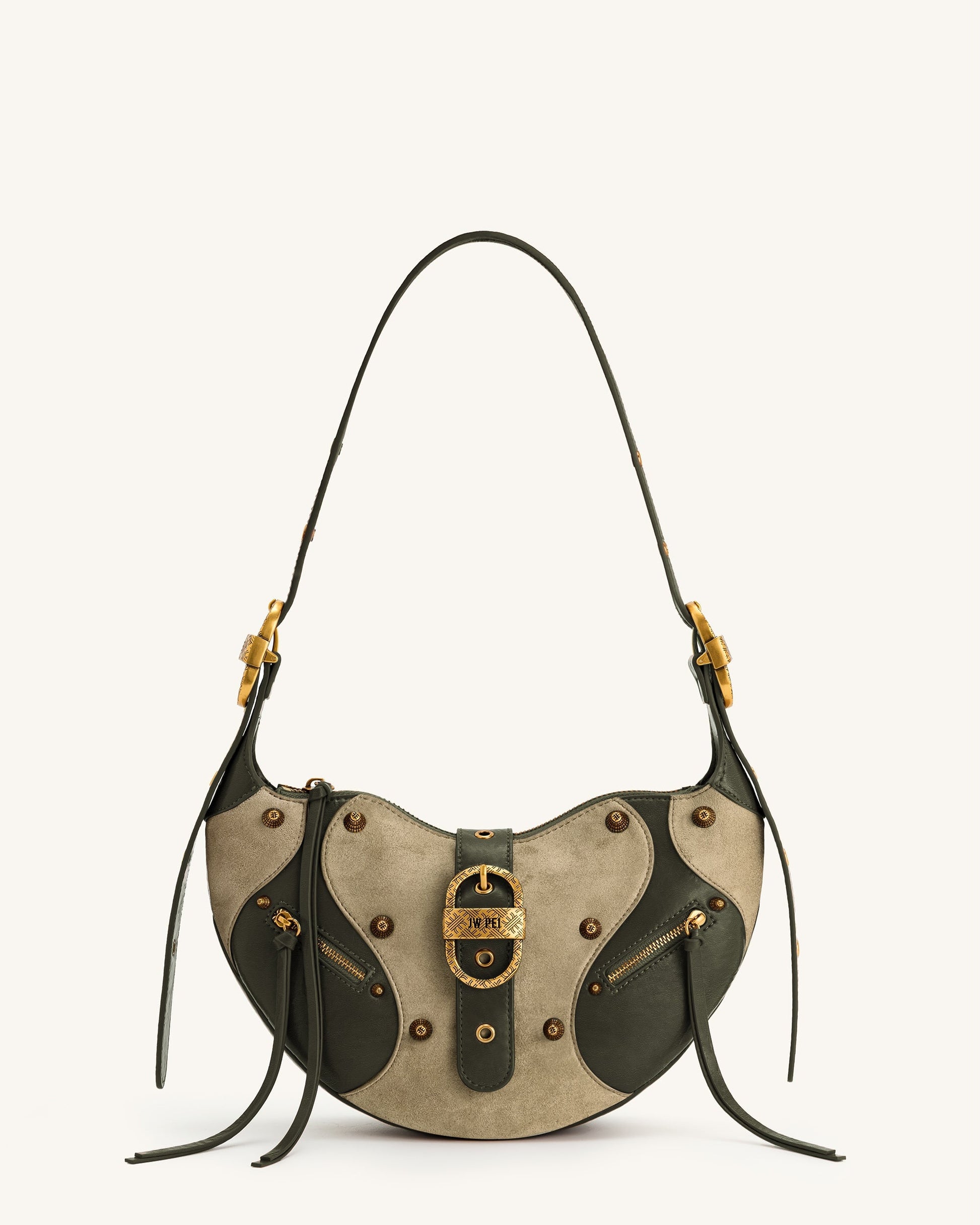 Tessa 페이크 스웨이드 스터드 숄더백 - 카키 그린