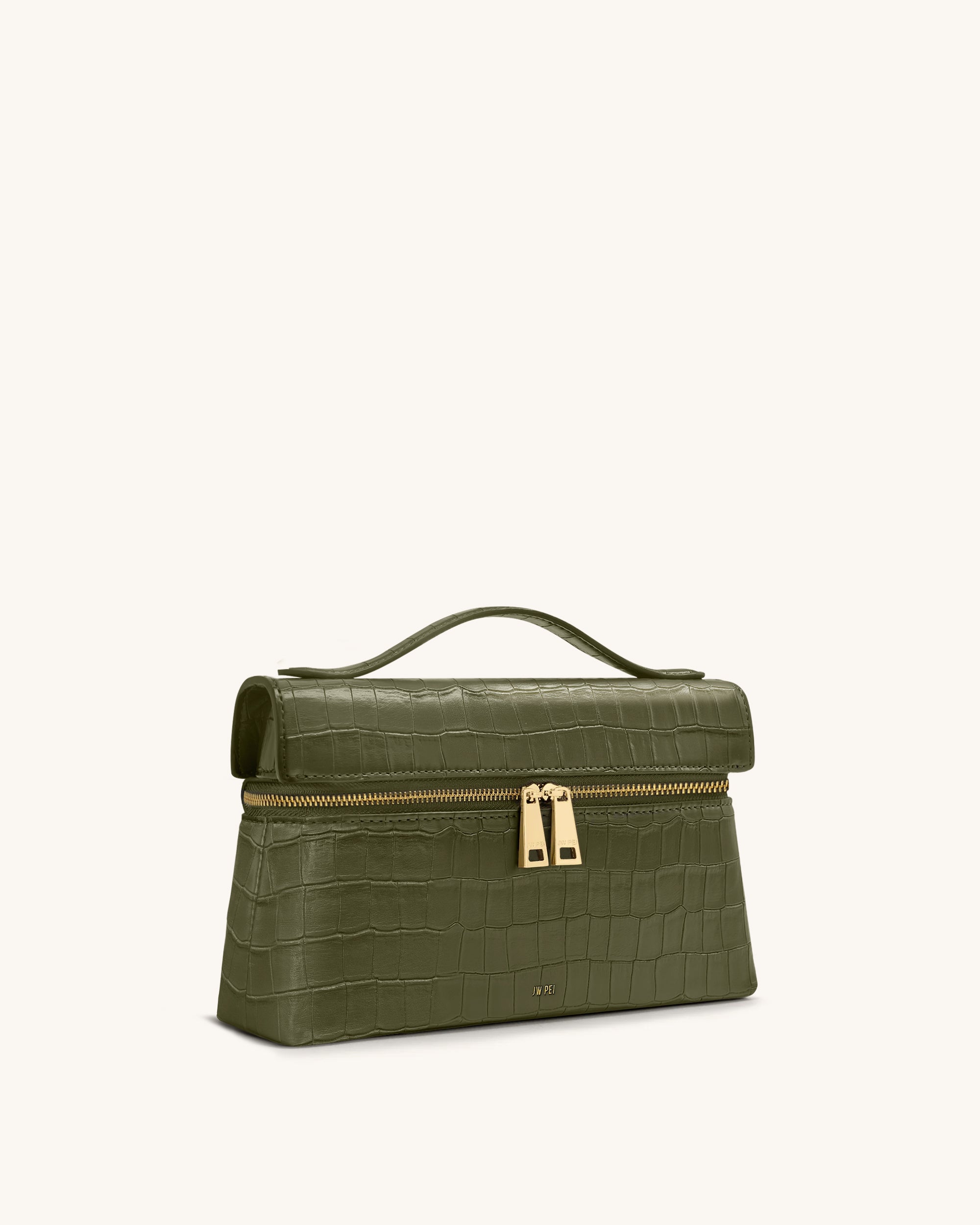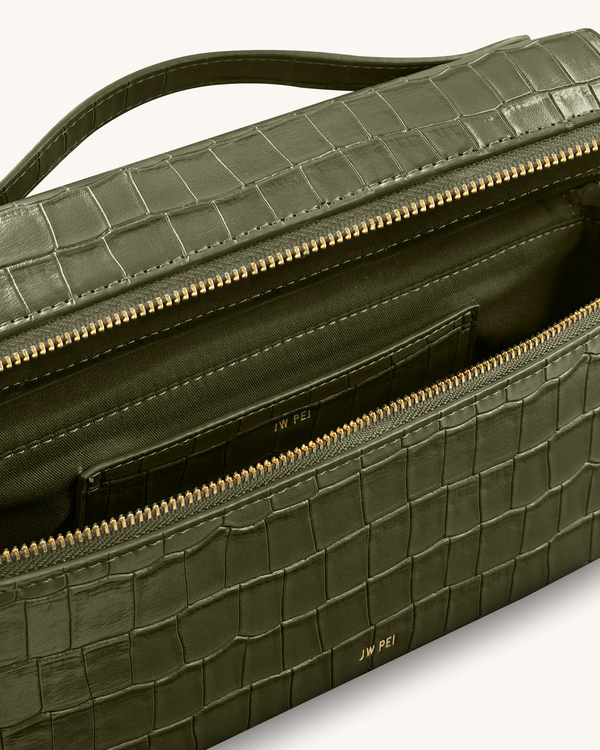 세련되고 트렌디하며 실용적입니다. 크로커 엠보 비건 레더와 골드 톤 하드웨어로 제작되었습니다. 손에 들거나 크로스바디로 다양하게 착용할 수 있습니다.