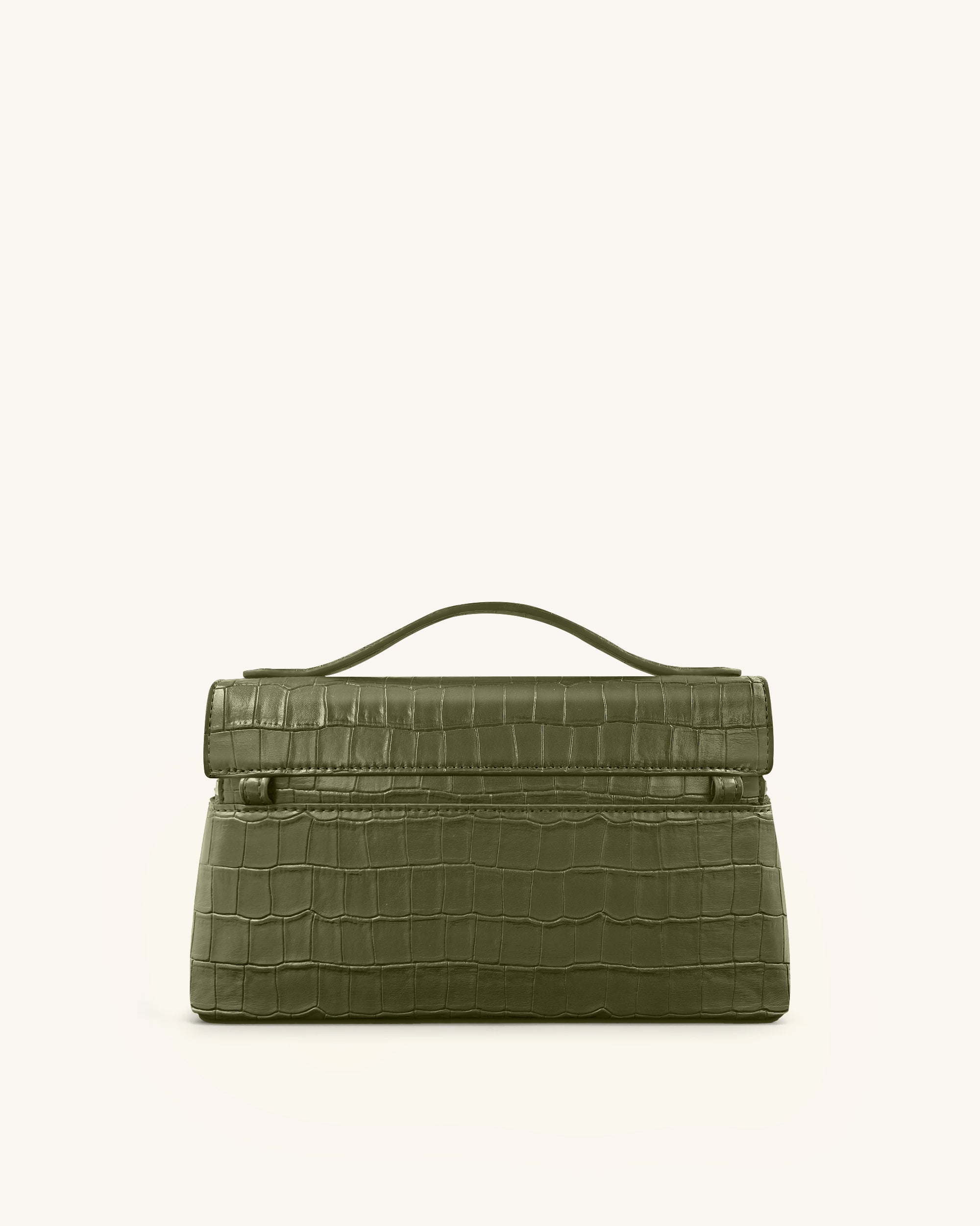 Thea 크로커 엠보 탑 핸들 백 - 올리브 그린