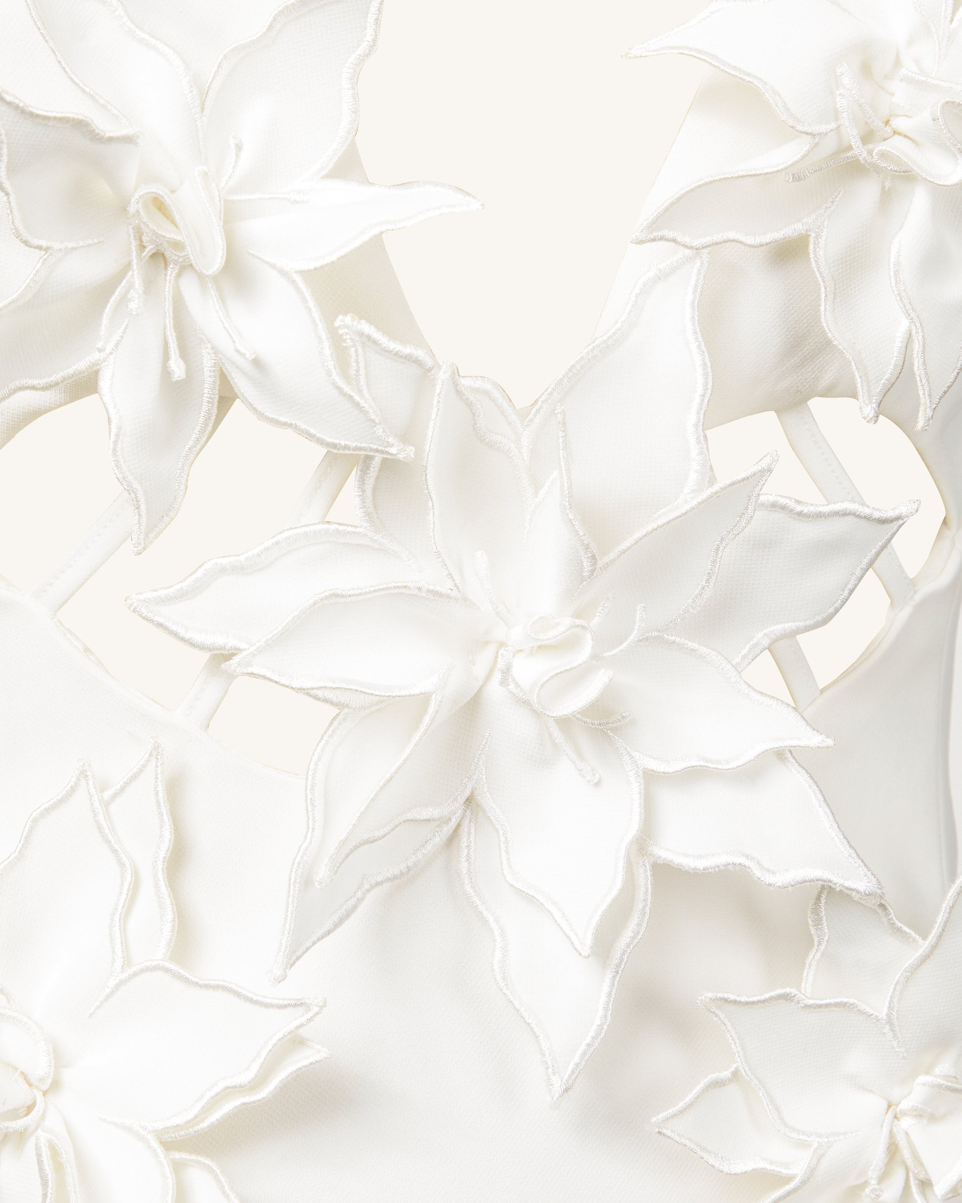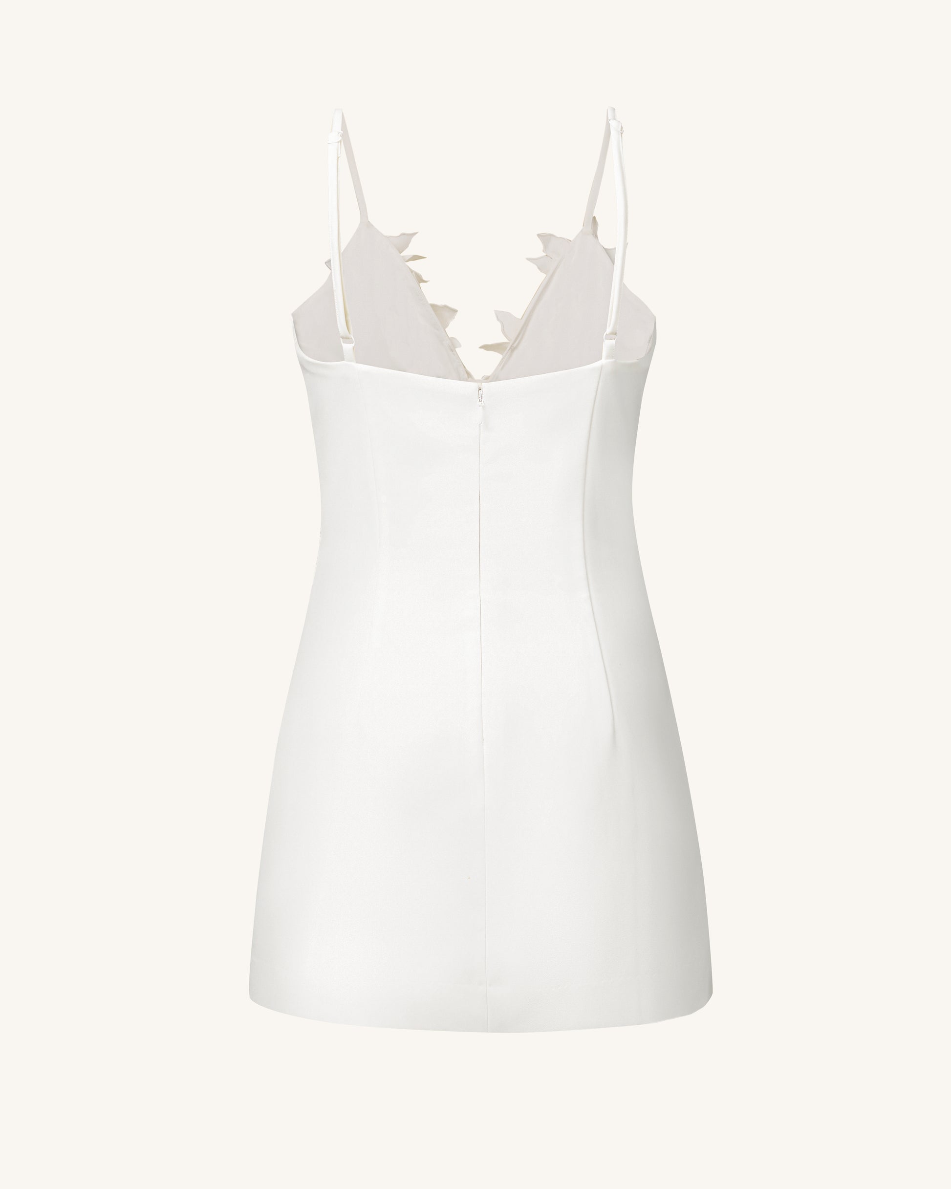 Yuliya 화이트 플로럴 장식 V넥 미니 드레스 - 화이트
